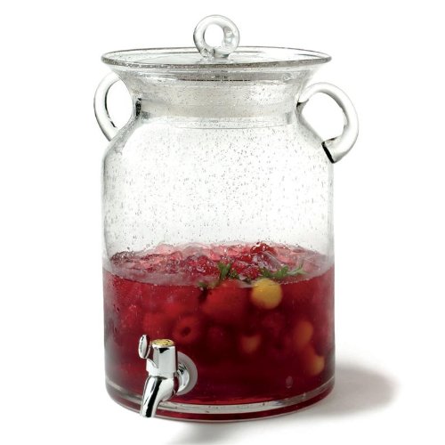 Vintage Glass Jar, Vintage Glass Jar Drink DispenserThe Vintage Glass Jar Drink Dispenser is perfect for parties or everyday at home. Hand-blown bubble glass and an elegant, vintage-inspired jar design is ideal for tea, lemonade and other festive drinks. The design features two convenient carry handles and a mess-free chrome metal spout. Even fits in the fridge. Features:Hand-blown bubble glass jar Rubber gasket seal lid Vintage-inspired design Hand-wash only